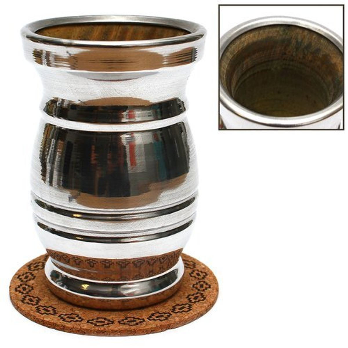 Matero wykonane z przyjemnie pachnącego drewna o kolorze brązowo-zielonym. Naczynko jest w całości okute w metal. Pojemność ok. 140 ml.