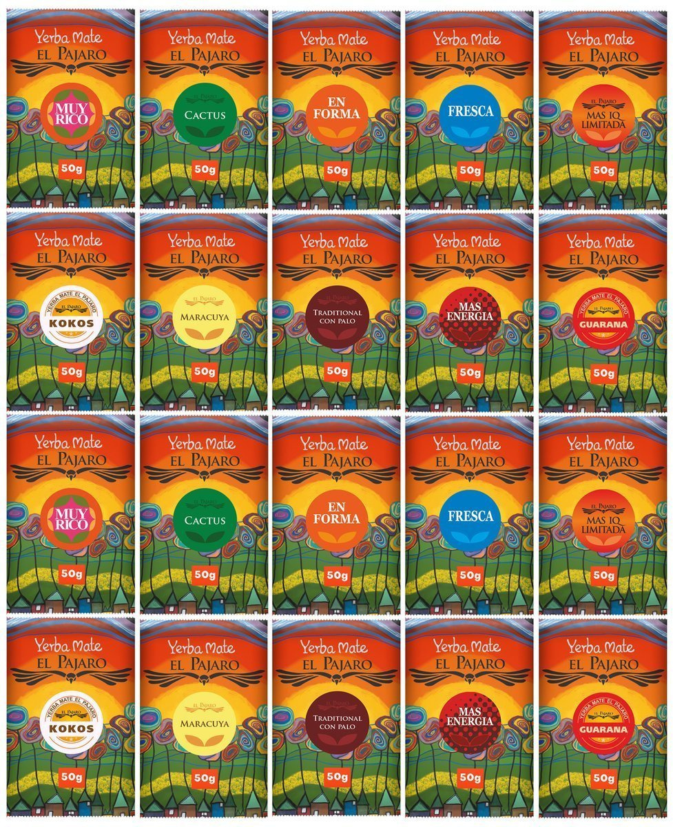 2x Zestaw Yerba Mate El Pajaro Elaborada 10 różnych smaków 10x50g 500 gCena: 27,68 zł / komplety
