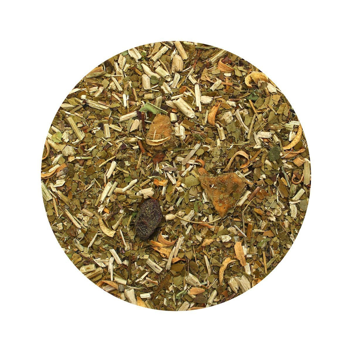 Dodatkowe wrażenia smakowe pojawiają się dzięki dwóm ziołom; przytuli i przetacznikowi, związanymi naturalnym aromatem ananasa wraz z jego apetycznymi kawałkami i dodanymi suszonymi owocami derenia. Przytulia i Przetacznik to dwa zioła, wnoszące od drugiego zalania naparowi, pierwotny klimat pralasu. Anansowo, pomarańczowy napój, sprawdzi się w lato, przygotowany z sokiem lub lodowatą wodą jako schładzające terere. Dzięki dodatkowi kwiatów pomarańczy ta mate, pomimo wyczuwalnej goryczy, cechuje się wyrazistym charakterem.