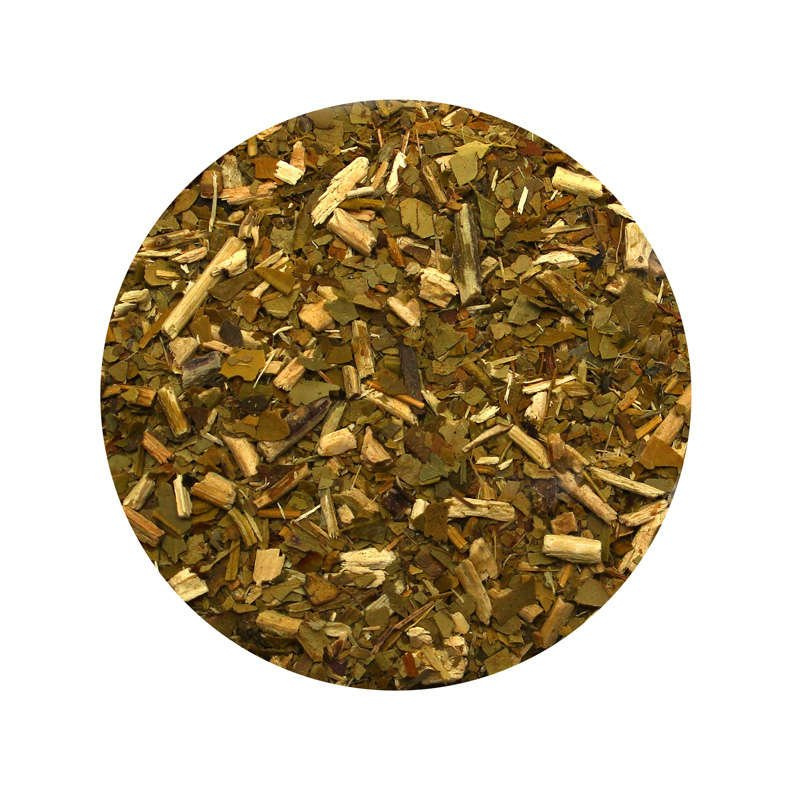 - Susz: drobno cięte listki i gałązki oraz spora zawartość pyłu ostrokrzewu paragwajskiego.