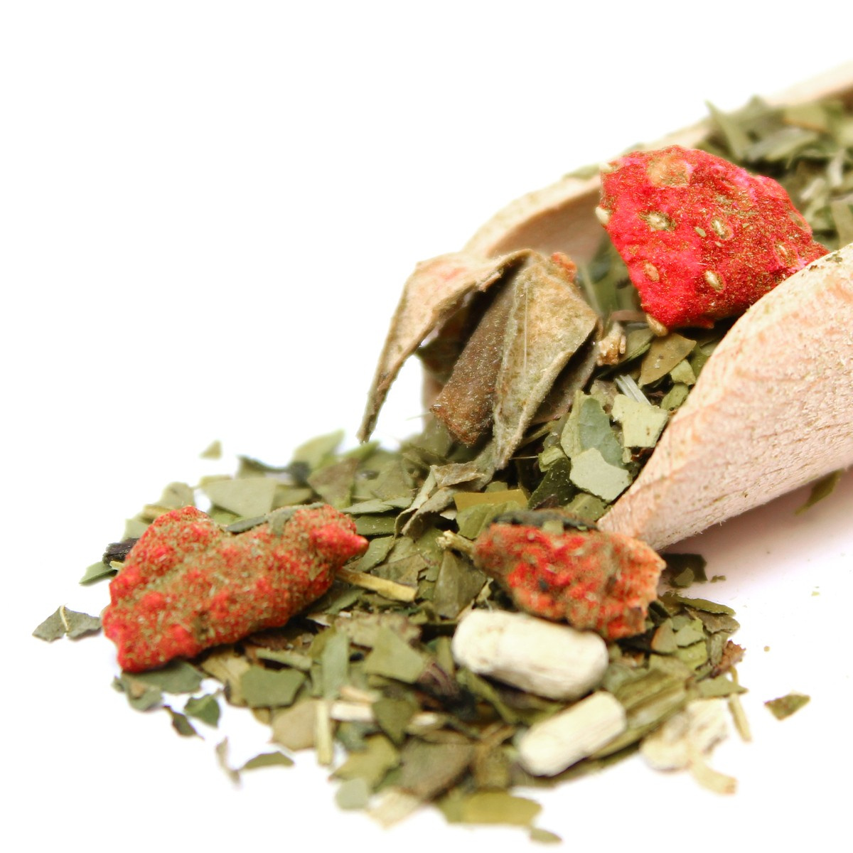 Mate Green Fuerte to doskonała ✔️ funkcjonalna yerba mate z dodatkiem naturalnych ziołowych i owocowych składników. Słodkie i orzeźwiające akcenty w postaci jagód goji doskonale uzupełniane są przez kwaskowe porzeczki oraz listki ginkgo biloba zwanego miłorzębem. To bogata mieszanka o doskonałym potencjale pobudzającym i wspaniałym smaku! Napar ma stabilną moc i głębię smaku, który koresponduje tu z ziołowymi dodatkami: korą catuaby oraz odświeżającej mięty i trawy cytrynowej. Wszystko to wzbogacone owocowymi dodatkami w postaci tropikalnej guarany, której owoce są znane z bardzo dużej zawartości naturalnej kofeiny. Moc tej kompozycji wydaje się być ukryta bo napar nie jest gorzki, a pachnący i dość delikatny jak na tak potężne zioła. Drugie i trzecie zalanie najlepiej przekazują smak owocowo-ziołowy.