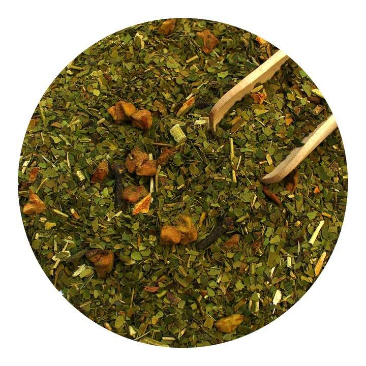 Składniki: yerba mate (Ilex paraguariensis) 93% - kraj pochodzenia: Brazylia, guarana sproszkowana 2%, mięta, trawa cytrynowa, nagietek, chaber bławatek, naturalny aromat.