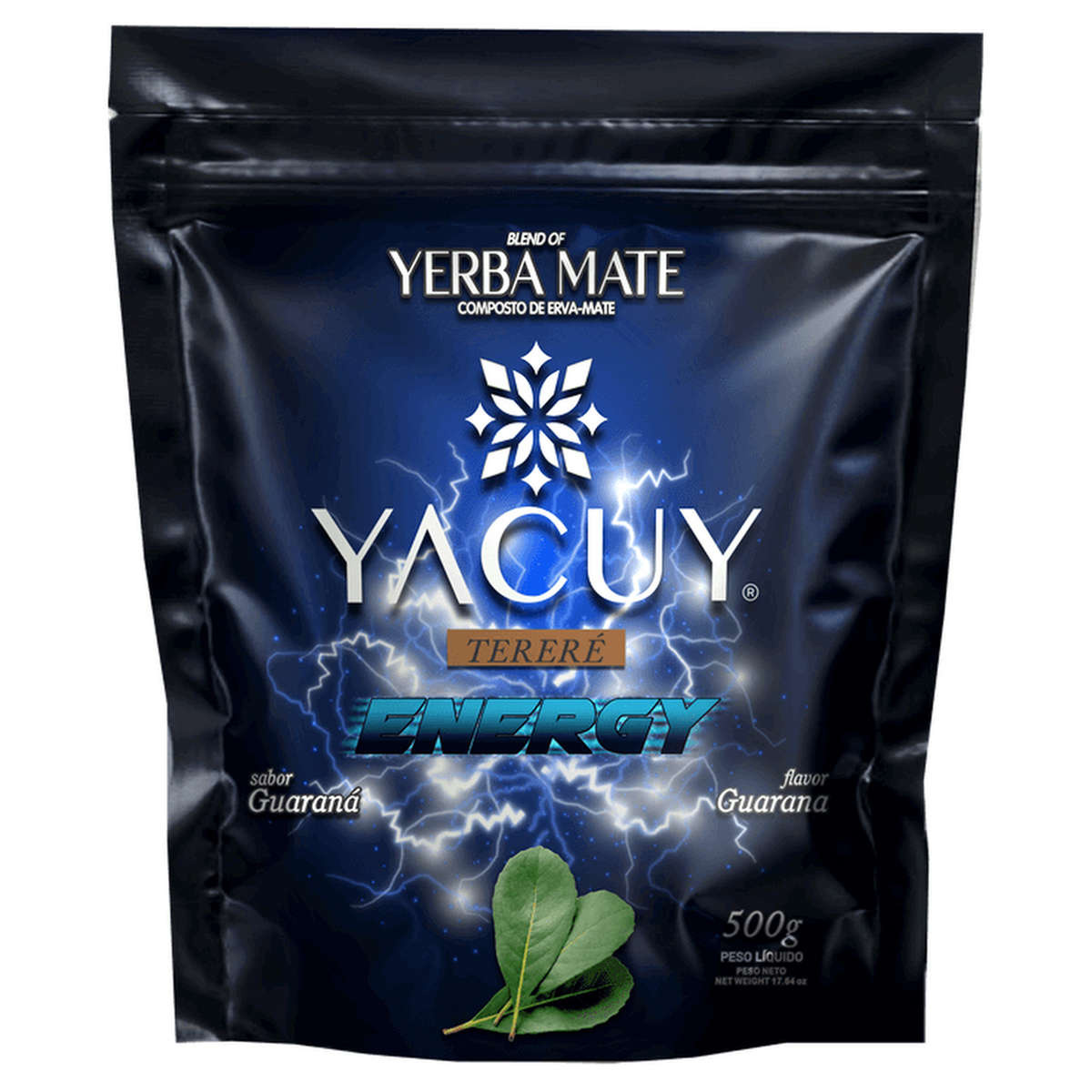 Yerba mate zapakowana jest w bardzo wygodną torbę typu doypack, która dzięki suwakowi, który można ponownie zamknąć chroni aromat i świeżość liści. Yacuy Energy została stworzona specjalnie do picia jej na zimno z lodem, czyli jako terere. W jej recepturze znajdujemy tym razem - nasze złoto Ameryki Południowej - w wydaniu bezpyłowym z dużymi patyczkami. Są one specjalnie selekcjonowane dla utrzymania wilgoci w naparze. Ta yerba z grubymi listkami, które powoli chłoną i oddają ksantyny do wody, jest bardzo popularna w samej Brazylii. Mieszkańcy tego kraju kochają owocowe i słodkie smaki nader wszystko. Ta pachnąca późnym late erva mate, przyniesie orzeźwienie, przygotowana zarówno na zimno z lodem i ciepło w klasycznym wydaniu z wodą o temperaturze 70 st. C. Polecamy ją zarówno dla osób, które dopiero uczą się picia Yerba Mate jak i dla wytrawnych smakoszy tego napoju. Mocny, ale przyjemny smak oraz intensywne działanie yerba mate to idealne połączenie dla miłośników terere, czyli yerby mate na zimno.