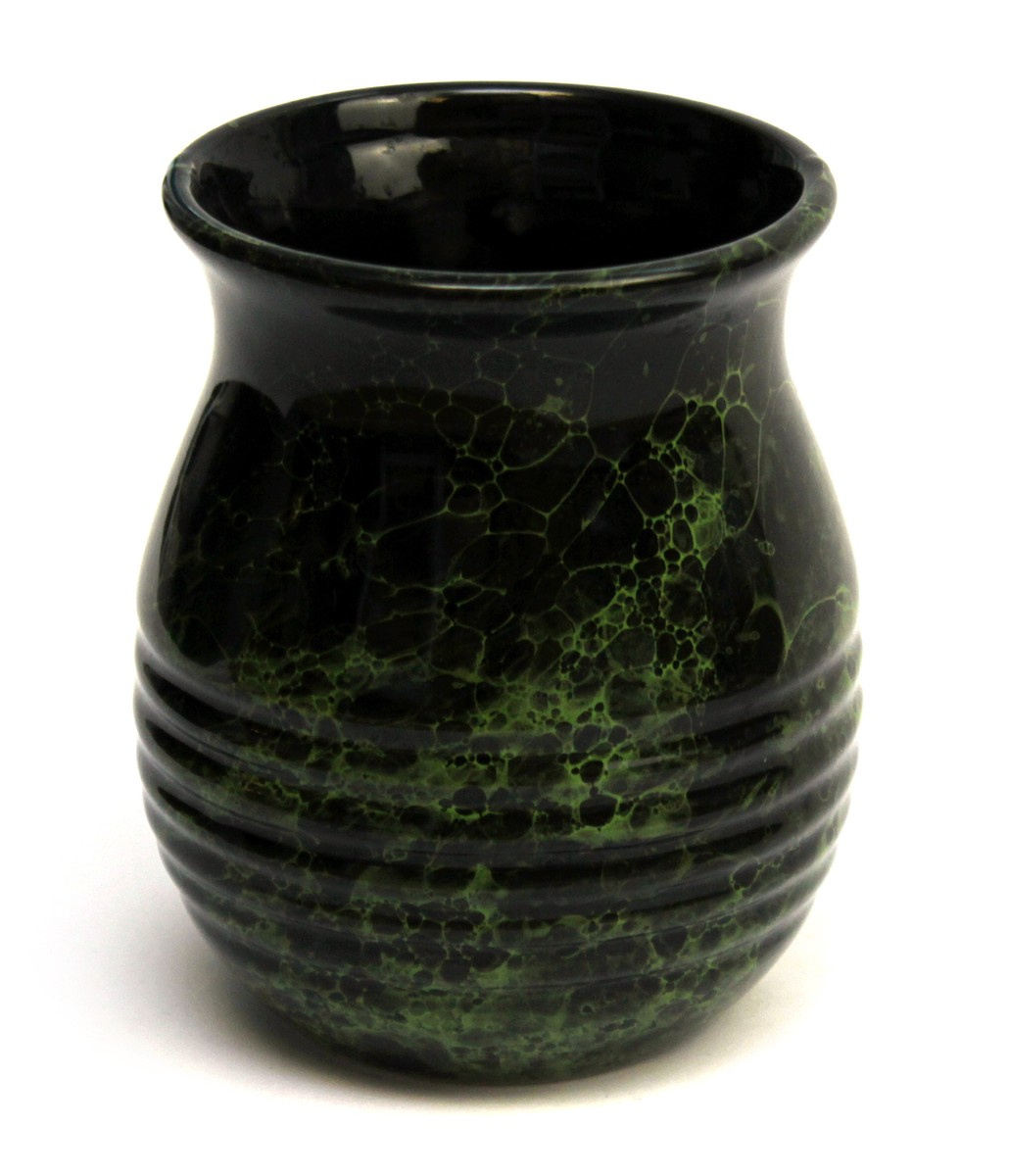 • To podwójnie szkliwione ceramiczne matero do yerba mate w kolorze ciemnego marmuru posiada design oparty na kształtnych naczyniach, wykonanych z drewna palo santo - tropikalnego, pachnącego drzewa.