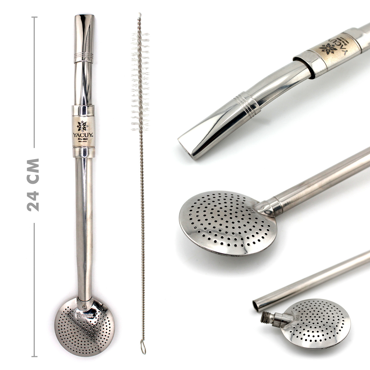 Przedstawiamy wyjątkową bombillę marki Yacuy – esencję brazylijskiego rzemiosła i elegancji. Ta luksusowa bomba została stworzona do erva mate - chimarrão. Wyprodukowana w 100% z najwyższej klasy stopu INOX. To solidny model, który nie tylko pięknie wygląda, ale jest również praktyczny i posłuży Ci przez długie lata.