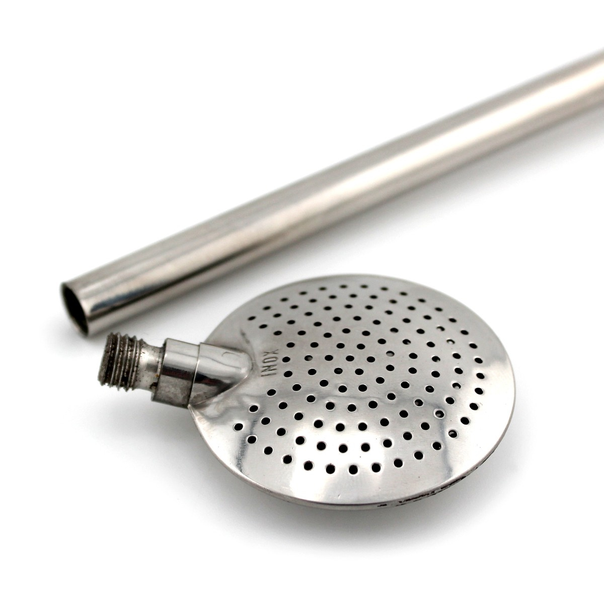 Spłaszczony, okrągły kształt szerokiego sitka jest dostosowany do filtrowania najbardziej zmielonych mate. Elegancki pierścień chłodzący w kształcie cui i wyprofilowany ustnik dodają bombilli ekskluzywnego wyglądu.