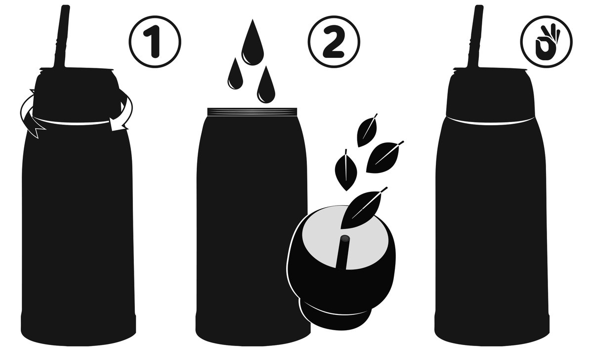 Nasze akcesorium idealnie spełnia się w roli zaparzacza. Jest to bardzo proste. Najpierw należy ściągnąć wieczko i nakrętkę. Dolną komorę należy wypełnić gorącą wodą. W górnej komorze powinno się znaleźć 25-50 g suszu (wielbiciele intensywniejszego smaku mogą pokusić się nawet na 60 g). Na koniec należy tylko przytwierdzić metalowy ustnik z uszczelką, która była zamknięta pod wieczkiem i można spożywać pyszny napar. Pojemnik z suszem jest automatycznie napełniany wodą z każdym pociągnięciem przez ustnik.