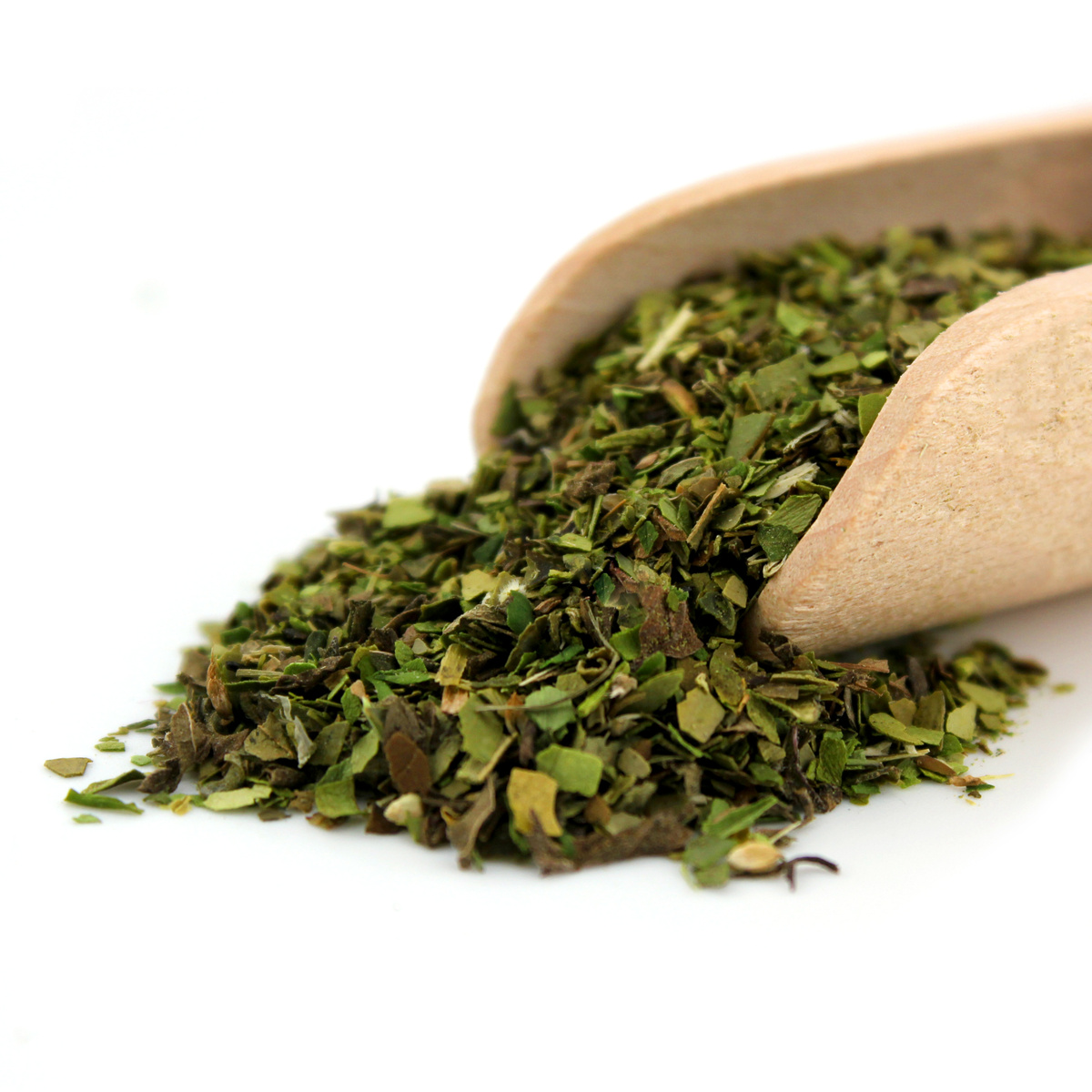 • Mate green: zawiera zielone listki krojone w zależności od partii od 3 do nawet 6 mm.