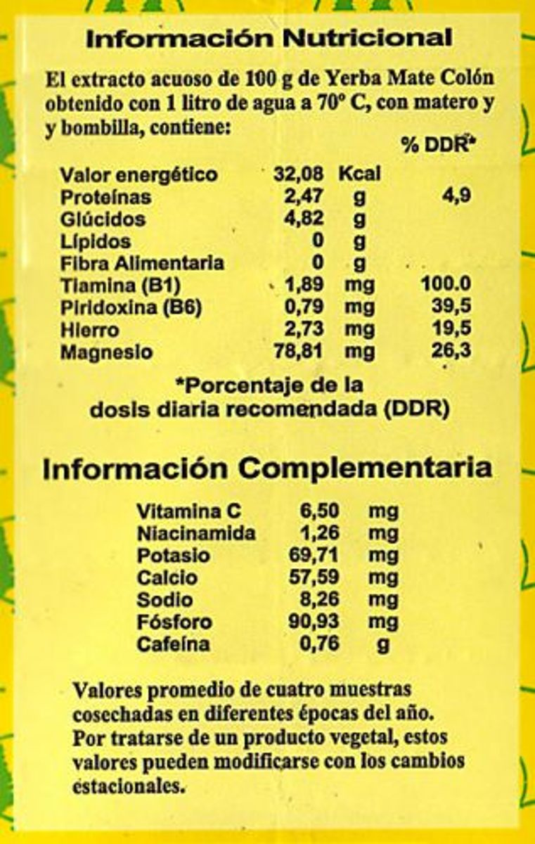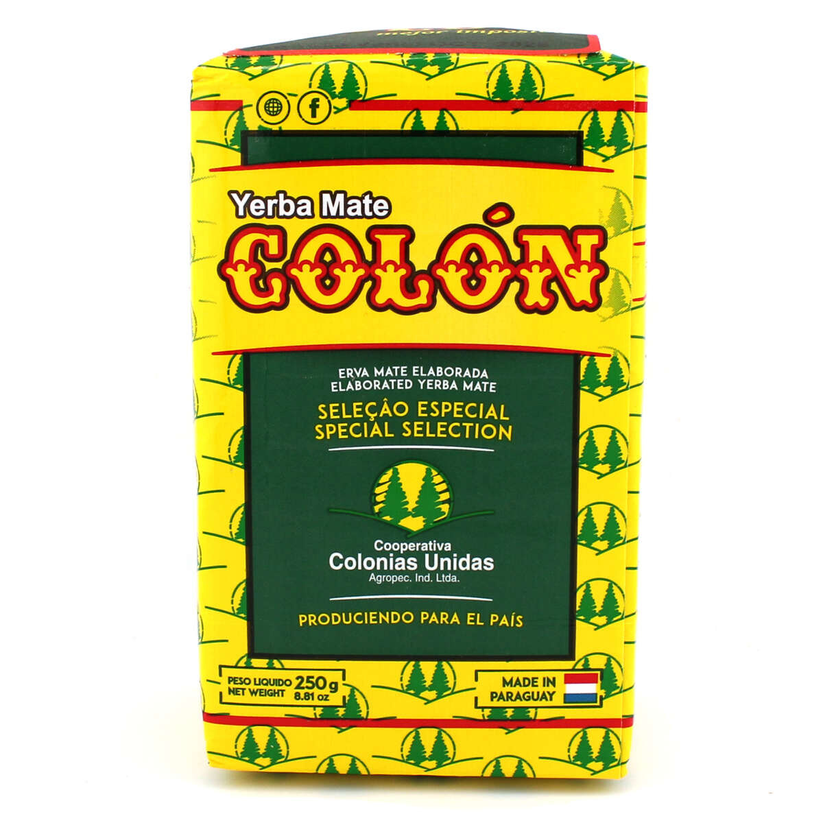 Jedna z najbardziej rozpoznawalnych i najlepiej się sprzedających paragwajskich odmian yerba mate.Colon Especial to wysokiej jakości susz składający się z liści i patyczków ostrokrzewu paragwajskiego, bez dodatków owocowych czy ziołowych. Produkcja Colon Especial odbywa się w tradycyjny sposób, z wykorzystaniem klasycznych południowoamerykańskich metod. Liście i patyczki są starannie selekcjonowane i leżakowane oraz suszone z wykorzystaniem dymu, co nadaje smakowi i aromatowi niepowtarzalny charakter. Zarówno smak i zapach naparu jest bowiem jedyny w swoim rodzaju-intensywny, z wyraźną nutą gorzkością oraz dymu (inaczej niż np. w przypadku yerba mate Union Hierbas del Litoral), łączący w sobie klasykę z egzotyką. Sposób uprawy i pakowania czyni Colon Especial również wyjątkowo mocnym napojem.
