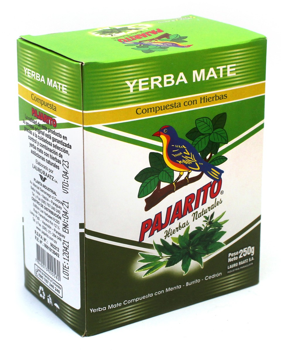 Intrygująca mieszanka o wielu obliczach. Yerba mate Pajarito con Hierbas to jedyna w swoim rodzaju mieszanka klasycznej paragwajskiej yerba mate z starannie dobranym bukietem ziół. Podstawę mieszanki stanowi ceniona paragwajska yerba mate Pajarito o wspaniałym, klasycznym smaku i mocy. Susz Pajarito pochodzi z renomowanych plantacji najsłynniejszego paragwajskiego producenta yerba mate - Lauro Raatza - i charakteryzuje się silnymi właściwościami pobudzającymi oraz wybitnymi walorami smakowymi. Dodatek aromatycznych ziół - cedronu, mięty oraz burrito - powoduje, że smak naparu jest intensywny i posiada ciekawy, egzotyczny charakter, a aromat jest inspirujący i na długo pozostaje w pamięci. Oprócz doskonałego smaku, napar posiada właściwości zdrowotne, co jest spowodowane głównie dodatkiem burrito i mięty. Te dwa zioła o podobnym zapachu i właściwościach leczniczych idealnie się bowiem uzupełniają i wzajemnie wzmacniają. Burrito pomaga zwalczać negatywne skutki stresu oraz uczucie zmęczenia, a także poprawia odporność organizmu i reguluje gospodarkę hormonalną. Z kolei mięta od wieków jest używana jako środek pomagający w niestrawnościach i zatruciach oraz posiada korzystny wpływ na układ moczowy.